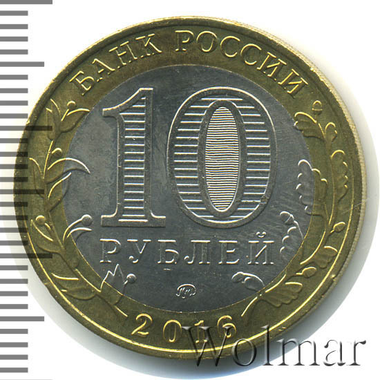 Реверс монеты 10 рублей 2016 года ММД Великие Луки