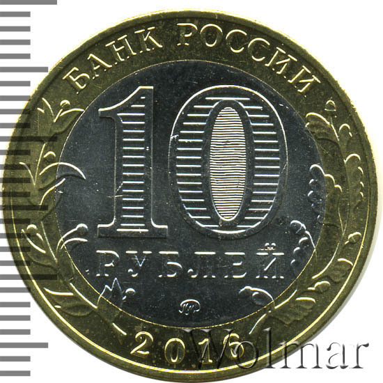 Реверс монеты 10 рублей 2016 года ММД Зубцов