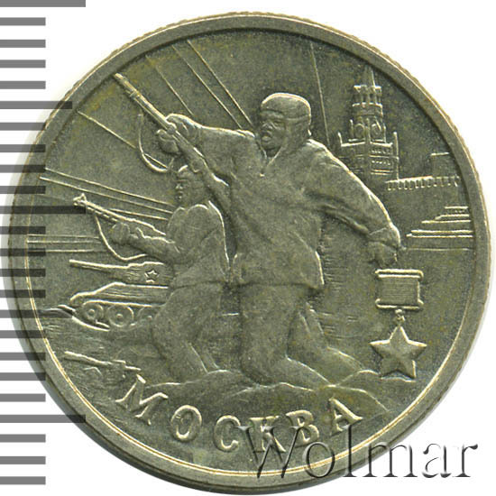 2 рубля. Москва. 55-я годовщина Победы в Великой Отечественной войне 1941-1945 гг.буквы ММД Аукцион: Wolmar Standart Состояние: XF | 18.03.2026 |
