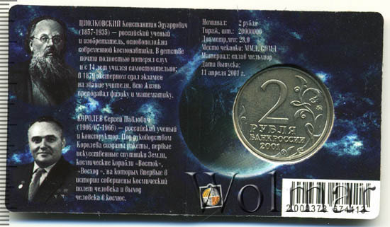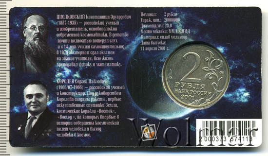 - Стоимость монеты 2 рубля 2001 года с Гагариным и без него