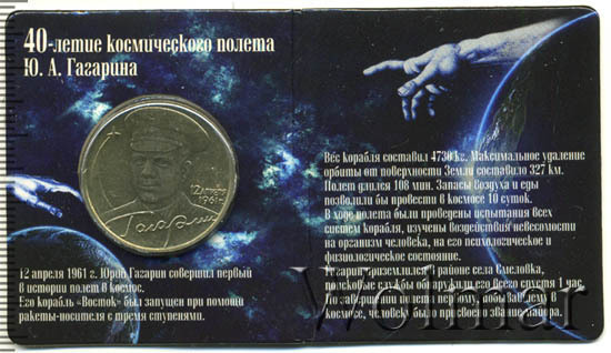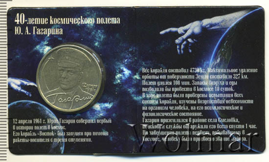 Гагарин Ю.А. 40-летие космического полета без обозначения монетного двора