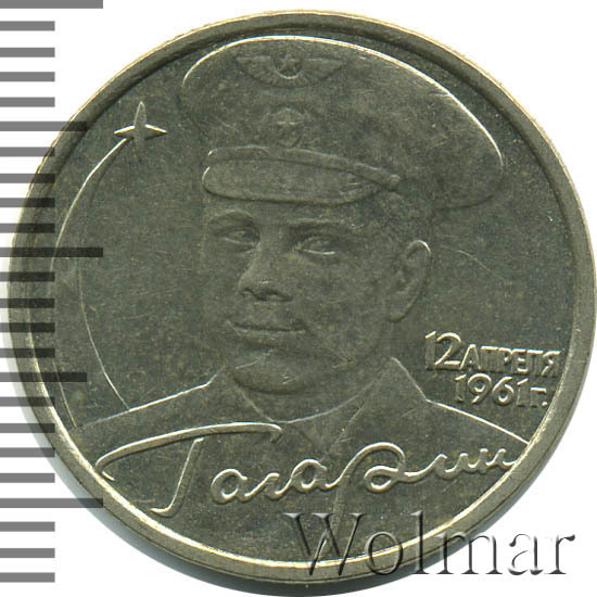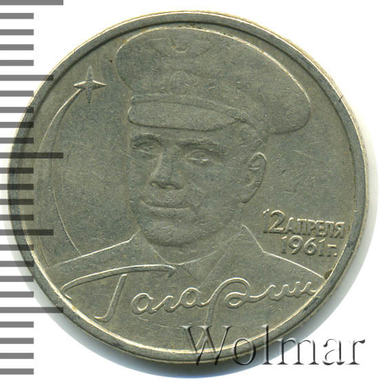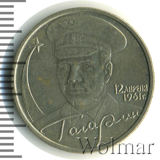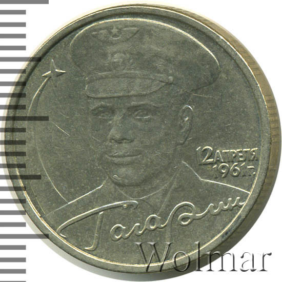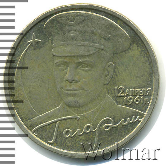 Аверс монеты 2 рубля 2001 года ММД Гагарин