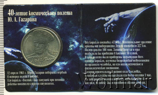Гагарин Ю.А. 40-летие космического полета без обозначения монетного двора
