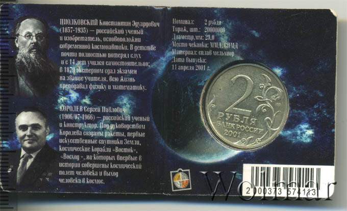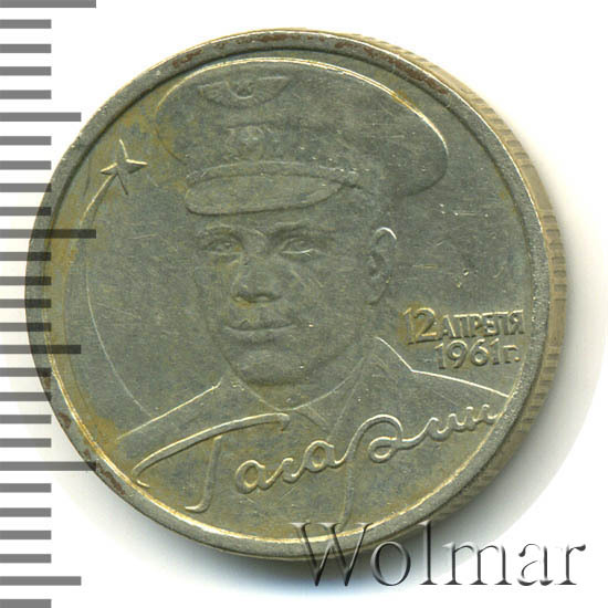 Аверс монеты 2 рубля 2001 года СПМД Гагарин