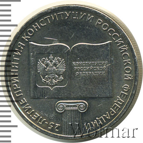 25 рублей. 25-летие принятия конституции Российской Федерациибуквы ММД Аукцион: Wolmar Standart Состояние: UNC | 10.12.2025 |