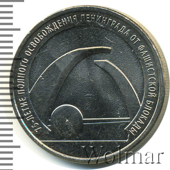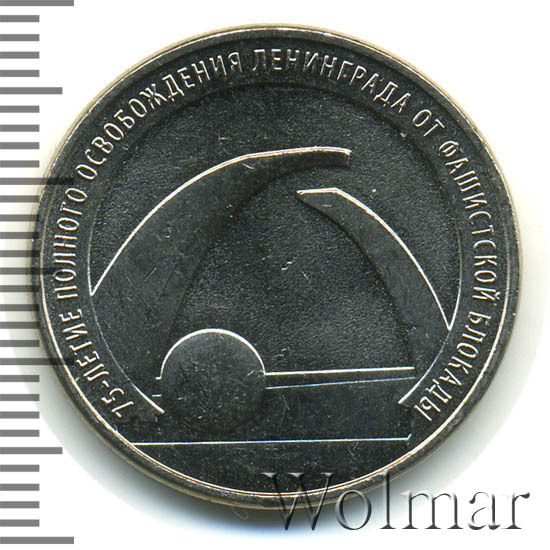 25 рублей. 75-летие полного освобождения Ленинграда от фашистской блокадыбуквы ММД Аукцион: Wolmar Standart Состояние: UNC | 10.12.2025 |