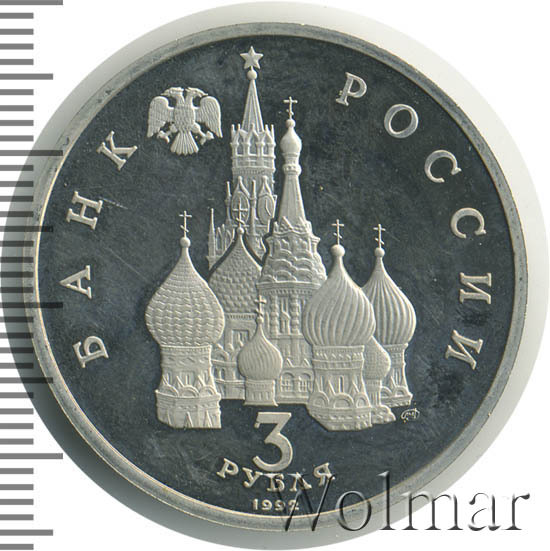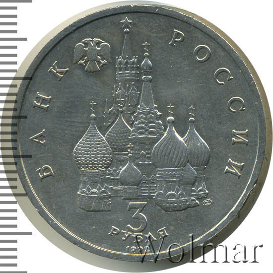 | Гурт | две углублённые надписи "ТРИ РУБЛЯ", разделённые двумя звёздочками. |