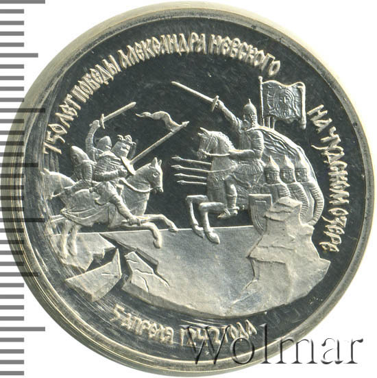 3 рубля. 750-летие Победы Александра Невского на Чудском озеребуквы ЛМД Аукцион: Wolmar Standart Состояние: PL (XF) | 19.11.2025 |