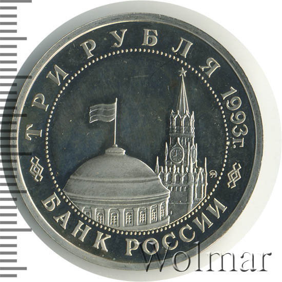 3 рубля 1993 ЛМД собор proof