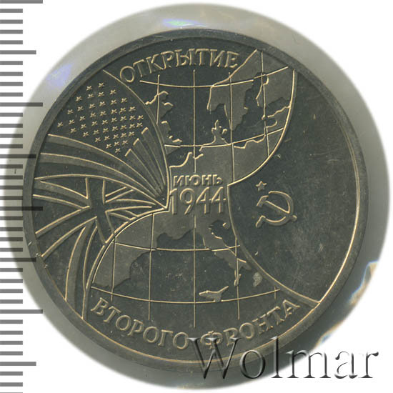 Реверс монеты 3 рубля 1994 года ММД второй фронт proof