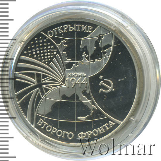 Цена на монету 3 рубля 1994 года ММД второй фронт Proof на сегодня, 24 октября 2025 года
