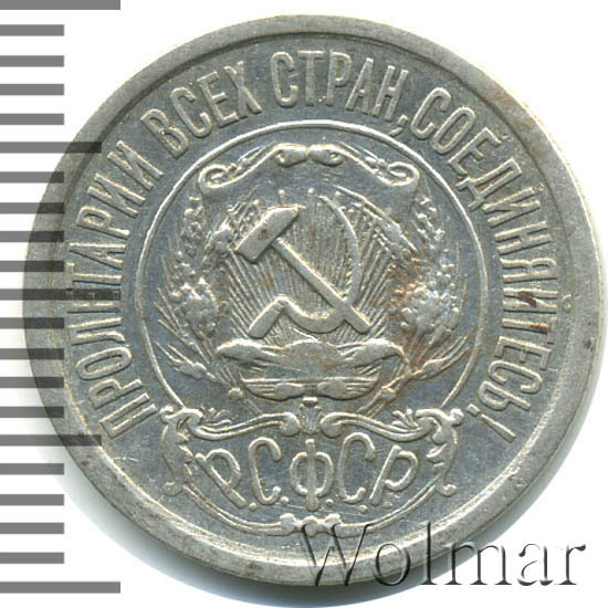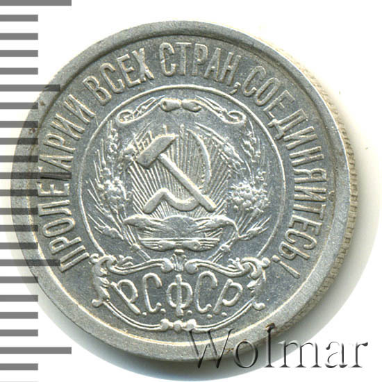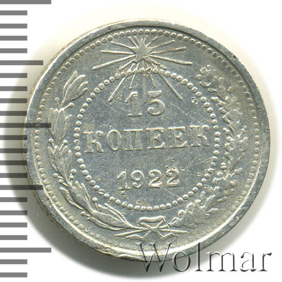 Реверс монеты 15 копеек 1922 года