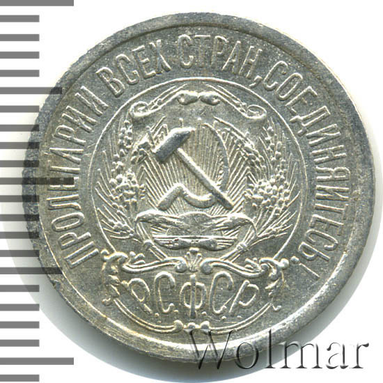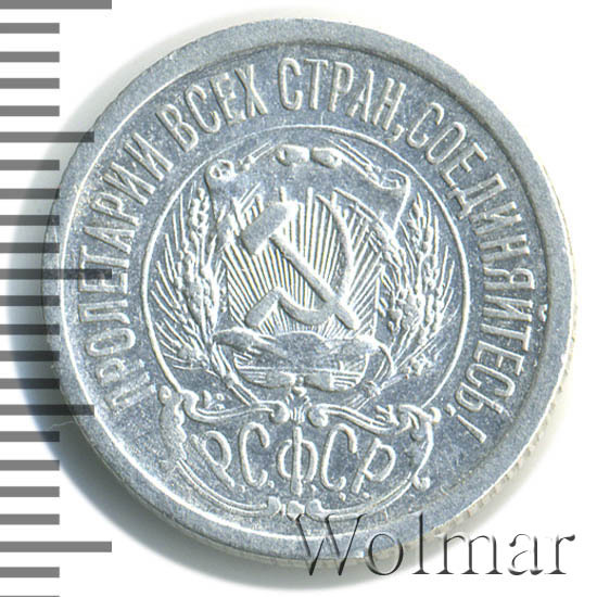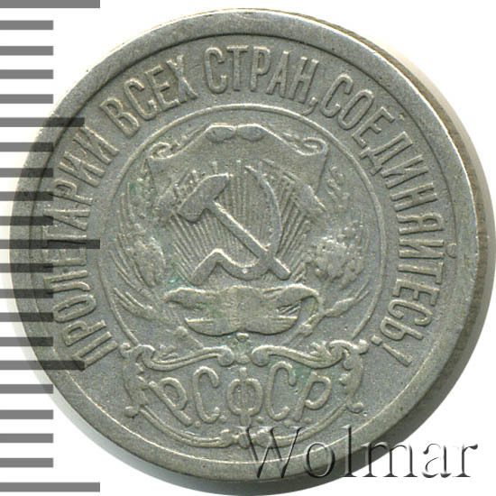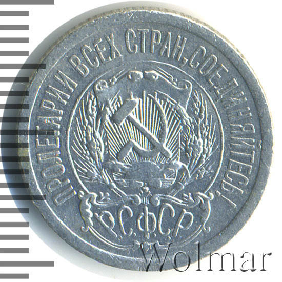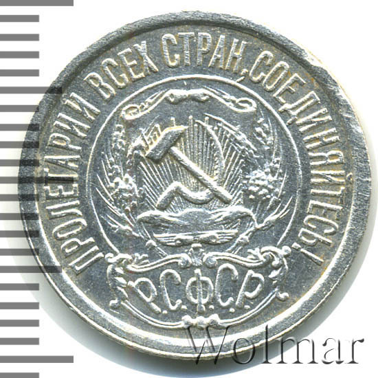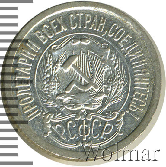 Стоимость 15 копеек 1923 не высока, так как эти монетки довольно частые. Чуть реже встречается шт.1 с тремя остями, на цене, правда, это практически не отражается, особенно для такого заурядного для них состояния, как VF. Следует заметить, что известны и другие количества остей и подгравировок внизу у колосьев, помимо описанных в каталоге, а сама тема по этим мелким и зачастую редким разновидностям, думается, ещё до конца не исследована.