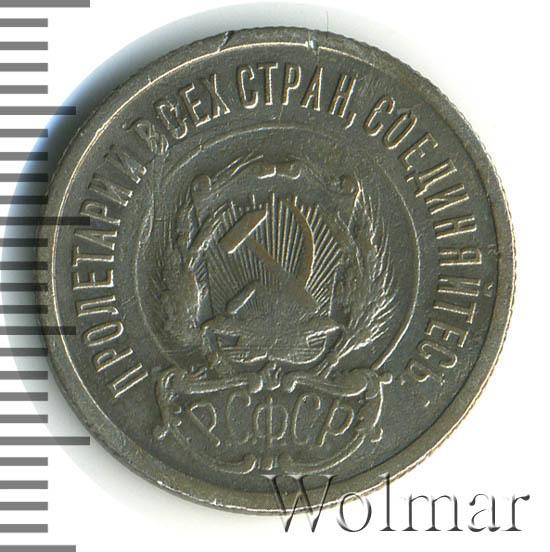 В начале 1921 года, Народный комиссариат финансов молодой республики Советов принял решение о возобновлении чеканки серебряных монет номиналом 10,15,20,50 копеек и 1 рубль. Были сохранены все технические параметры, принятые при производстве монет Российской Империи, только с новым изображением. Тип аверса у всех номиналов был одинаков: Государственный герб РСФСР окруженный надписью "Пролетарии всех стран, соединяйтесь!". Рисунок реверса у монет в 10,15 и 20 копеек, так же был идентичным: обозначение номинала и год выпуска внутри венка, вверху – звезда, окруженная лучами.