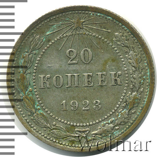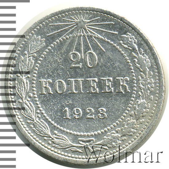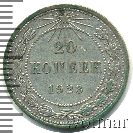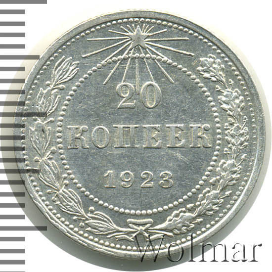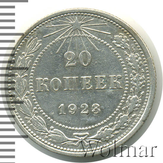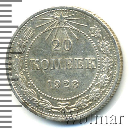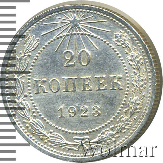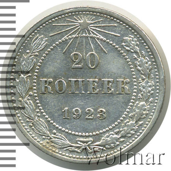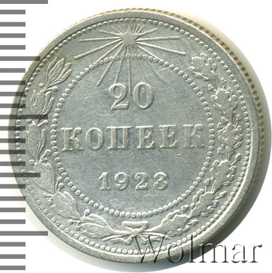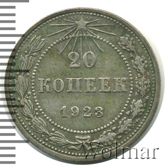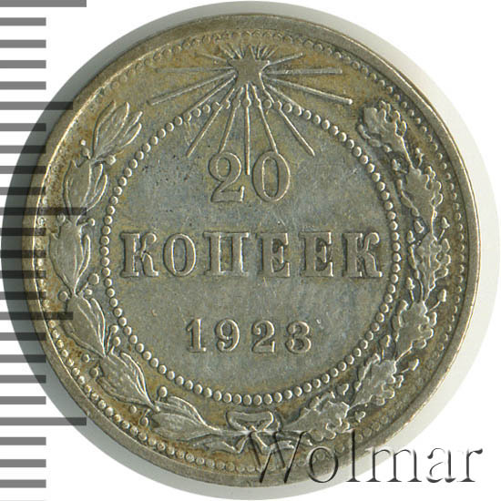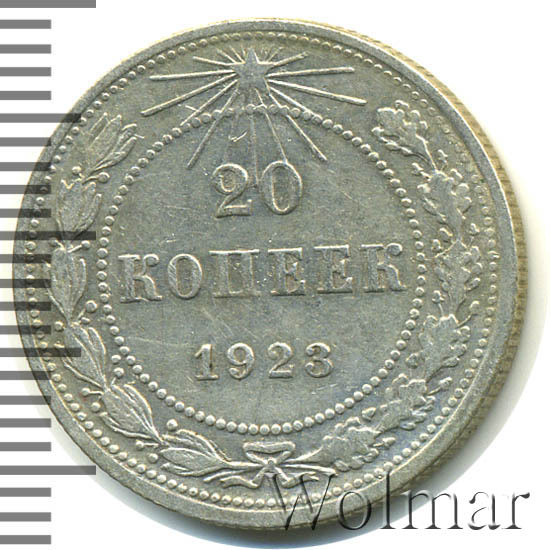- 20 копеек 1923 года. Цена серебра пятисотой пробы