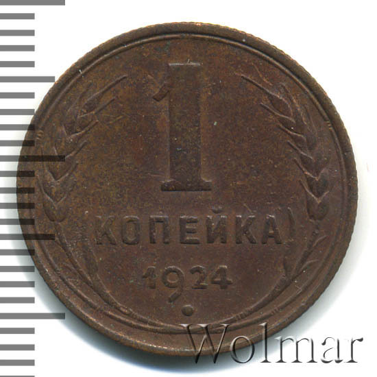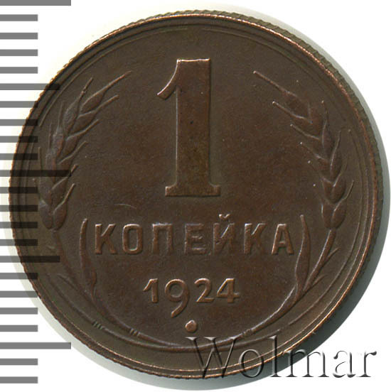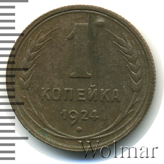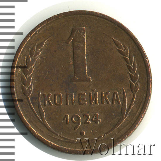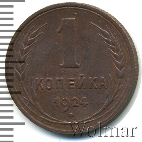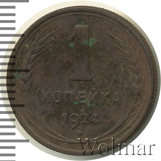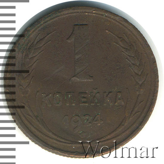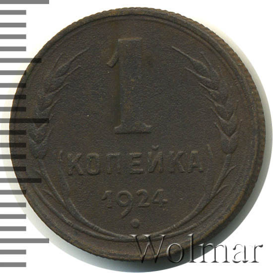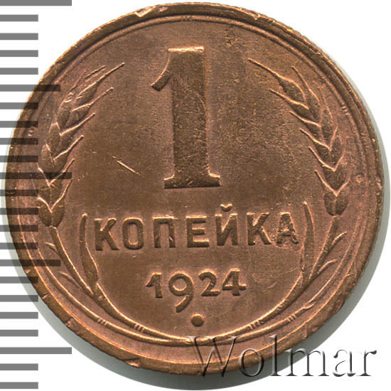 - Новая эра медных монет: цена монеты 1 копейка 1924 года