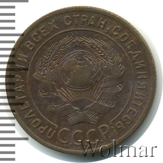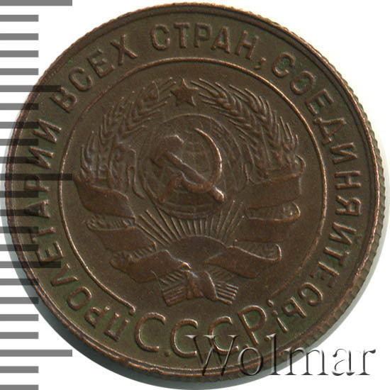 Стоимость 1 копейки 1924г. существенно отличается по разновидностям, таких видов существует 5, они разнятся незначительными деталями, такими как, варианты расположения узелков стебельного ободка, гладким и рубчатым гуртом и проч. Самой редкой считается копейка с лицевым штампом от 20 копеек 1924г. с буквами СССР вытянутой формы. Узнать актуальную цену 1 копейки 1924г. вы можете на странице ниже, по нашему каталогу проходов и цен, отмеченных на торгах самых популярных нумизматических аукционов.