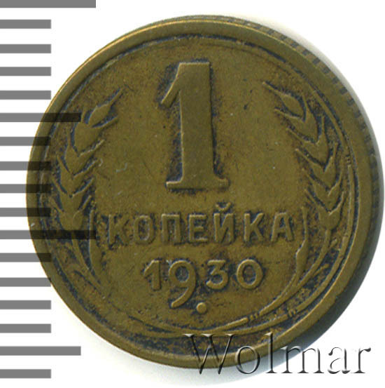 Чеканились небольшие монетки, номиналом в одну копейку, На Ленинградском монетном дворе (сейчас СПМД, г. Санкт – Петербург). В 1930 году, было выпущено семь номиналов разменных монет для денежного обращения Советского Союза. Изготавливались из: светло – золотистого, немагнитного монетного сплава алюминиевой бронзы. Соостность (расположение сторон монеты друг к другу) – медальная. Тираж: 85351 тысяч штук.