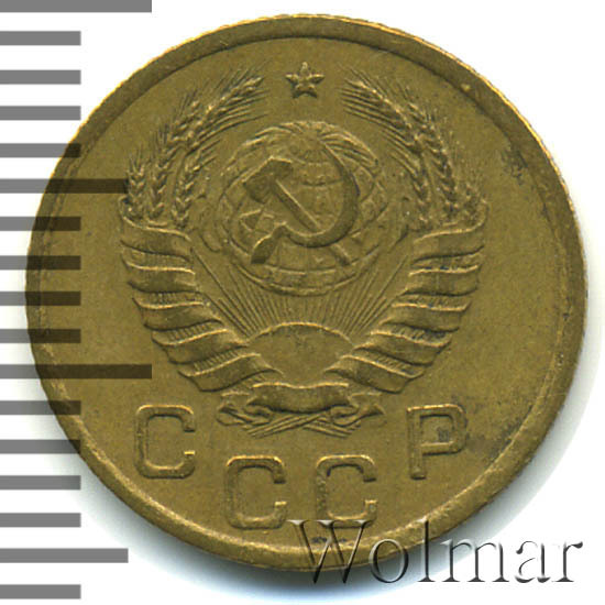 Одна копейка 1939 г. – тиражная монета для денежного обращения СССР. Копеечные номиналы, образца тридцать пятого – сорок шестого годов, чеканились с традиционным дизайном: в гербе государства 11 витков связующей ленты, а буквы СССР прямоугольной формы. Производство велось на Ленинградском монетном дворе (ЛМД, ныне СПМД, г. Санкт – Петербург). Материал изготовления: алюминиевая бронза, немагнитная, светло – золотистого цвета. Отношение гербовой и оборотной сторон – медальное. Тираж до сегодняшнего дня не известен. Цена 1 копейки 1939 г. не велика, зависит от коллекционного состояния.