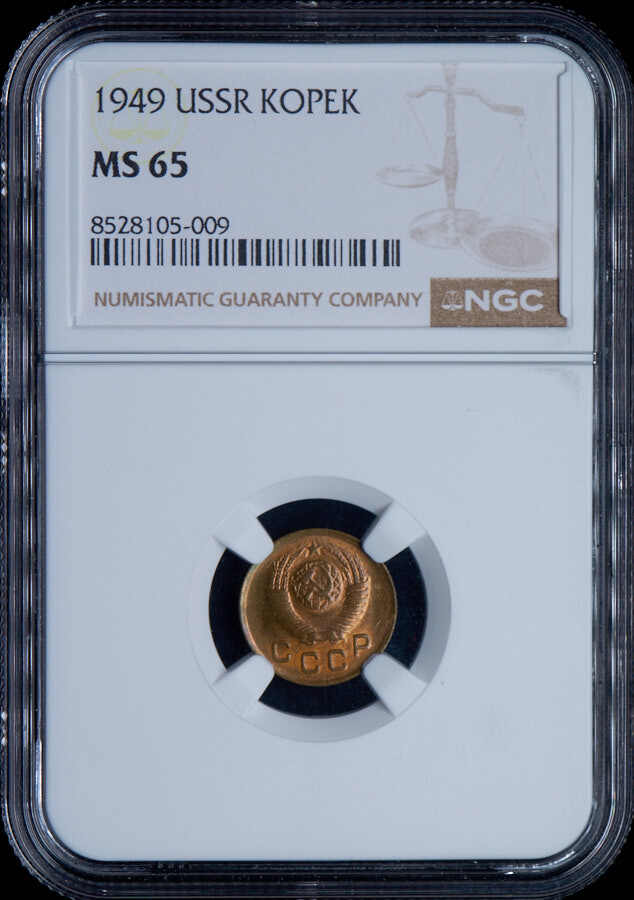 Копейка 1949 (в слабе) Аукцион: AdaCoins Online Состояние: MS 65 | 09.10.2025 |