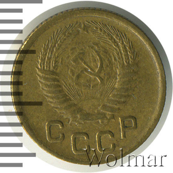 Аверс монеты 1 копейка 1955 года