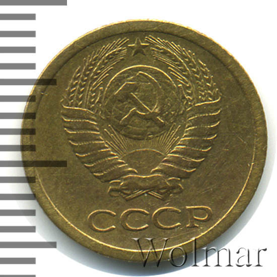 Гурт рубчатый с вертикальными насечками. Обычная годовая копейка, тип чеканки 1961 – 1991 гг. Представляет интерес только в сохранности UNC.