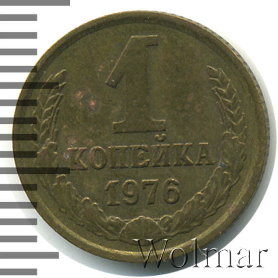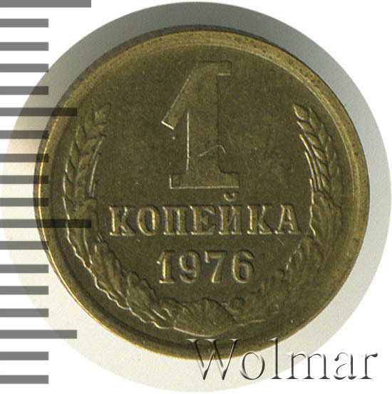 Известных штемпельных разновидностей нет. Цена 1 копейки 1976 г. небольшая, в связи массового тиража, нумизматическую ценность только в высокой коллекционной сохранности UNC. Подробнее ознакомиться с ценой одной копейки 1976 года, Вы можете во вкладке «стоимость монет», а так же принять участие в текущих интернет - аукционах, пройдя по вкладке «активные лоты».
