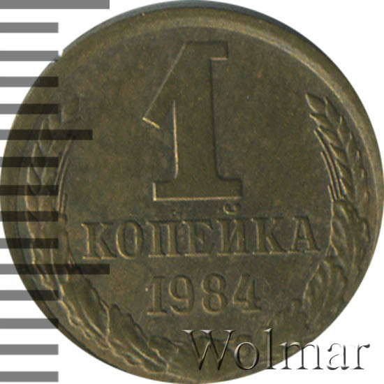 Выпускались как для годовых наборов (улучшенного качества) Гос. Банка, так и для обращения (обычного качества). Тираж большой, 1 копейка 1984 года представляет коллекционную привлекательность только в отличном качестве UNC. Но, даже в таком высоком состоянии, цена на 1 коп. 1984 г., минимальна. Разновидность - шт. 1.42, рассматривается отдельно.