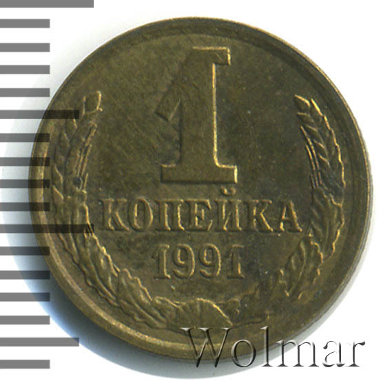 Реверс монеты 1 копейка 1991 года Л