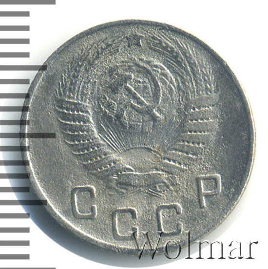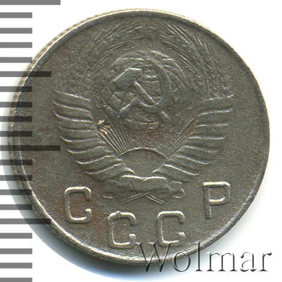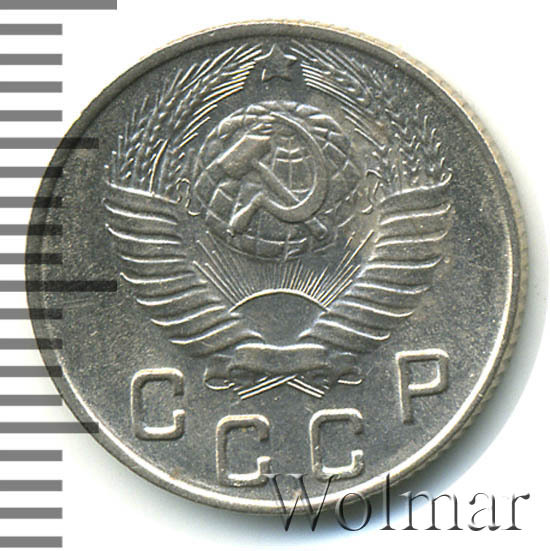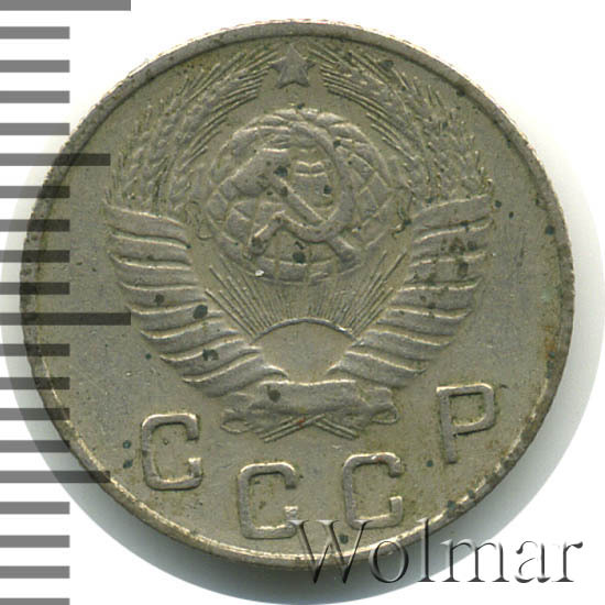Материал чеканки - мельхиор. Ленинградский монетный двор. Разновидностей – пять (см. описание аверса). Монеты специального чекана пятидесятых годов (новоделы) очень редки и высоко оценены (Ф№100Н – 2000 долл. США).