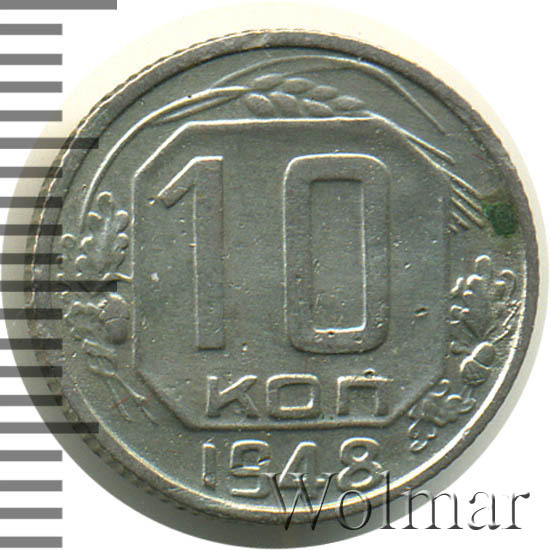 Узнать актуальную цену на 10 копеек 1948 года, Вы можете на странице ниже, по нашему каталогу проходов, отмеченных на торгах самых популярных нумизматических аукционов.