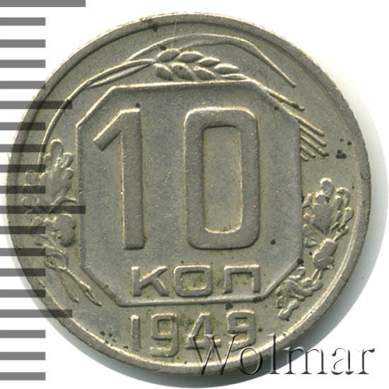Цена на монету 10 копеек 1949 года на сегодня, 22 января 2026 года
