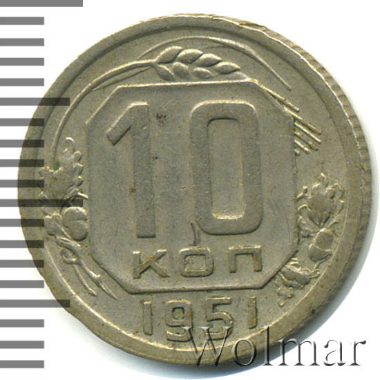 Цена на монету 10 копеек 1951 года на сегодня, 24 апреля 2026 года
