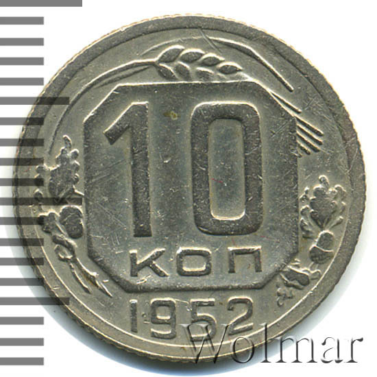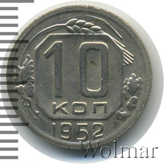 Цена, в среднем состоянии, не высока, коллекционном (без следов хождения в обороте, в штемпельном блеске), стоимость 10 копеек 1952 г. повышается в несколько раз. 10 коп. специального чекана второй половины пятидесятых годов (новоделы) (Ф№113Н), очень редки и высоко оценены (Федорин 2013 – 1000 у.е.). Более подробно ознакомиться со стоимостью 10 копеек 1952 года, Вы можете во вкладке «стоимость монет», а так же принять участие в текущих аукционах, пройдя по вкладке «активные лоты».