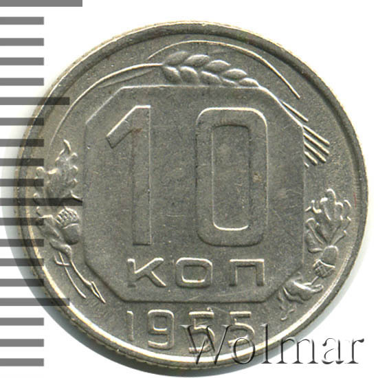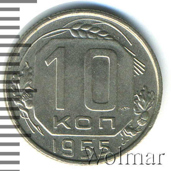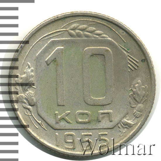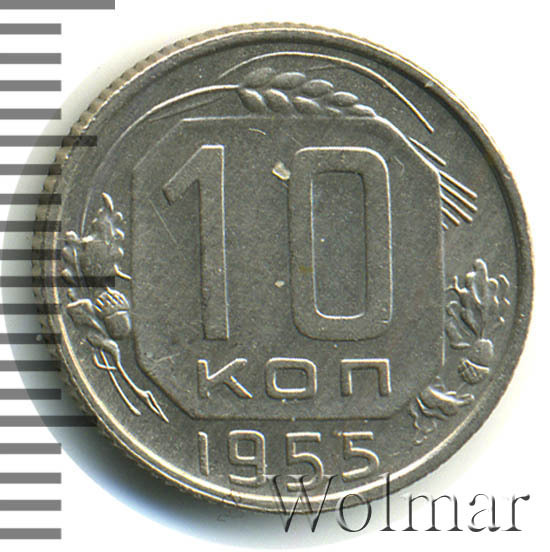 В отличной сохранности (без следов хождения, в штемпельном блеске), стоимость 10 коп. 1955 г. отличается в несколько раз в большую сторону, чем у монеток в среднем коллекционном состоянии. Более подробно ознакомиться с ценой 10 копеек 1955 года, Вы можете во вкладке «стоимость монет», а так же принять участие в текущих аукционах, пройдя по вкладке «активные лоты».