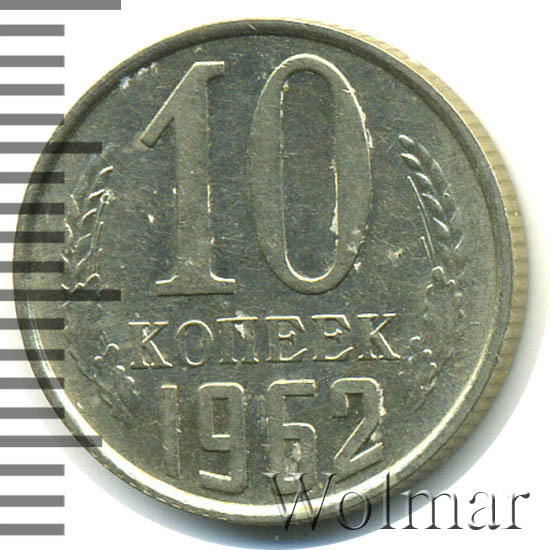 Аверс монеты 10 копеек 1962 года