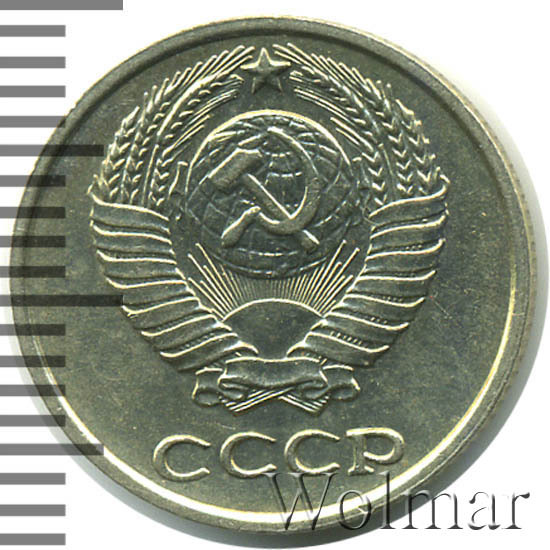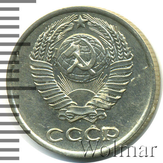 Штемпель 1.11. вторые колосья с внутренней стороны без остей, левый нижний конец ленты тонкий и не касается земного шара, герб СССР - 15 витков ленты.