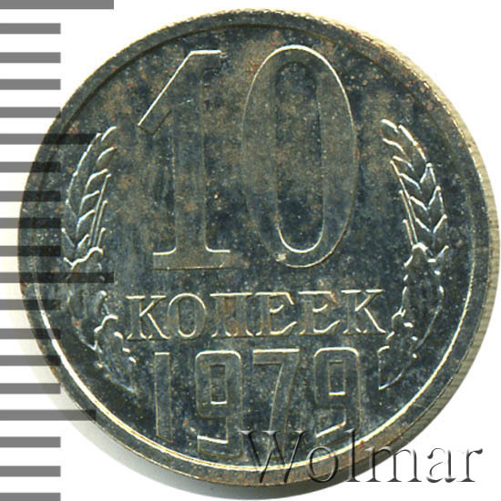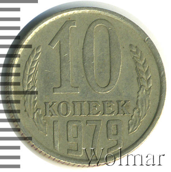 Гривенник 1979 года довольно обычная медно-никелевая монетка, разновидностями не отличается. Цена 10 копеек 1979 года очень мала. Подробнее ознакомиться со стоимостью 10 копеек 1979г. поможет наш каталог, составленный по результатам торгов на ведущих российских нумизматических аукционах.