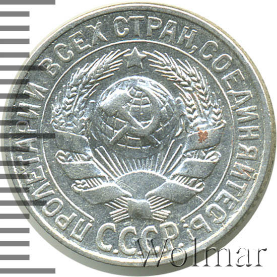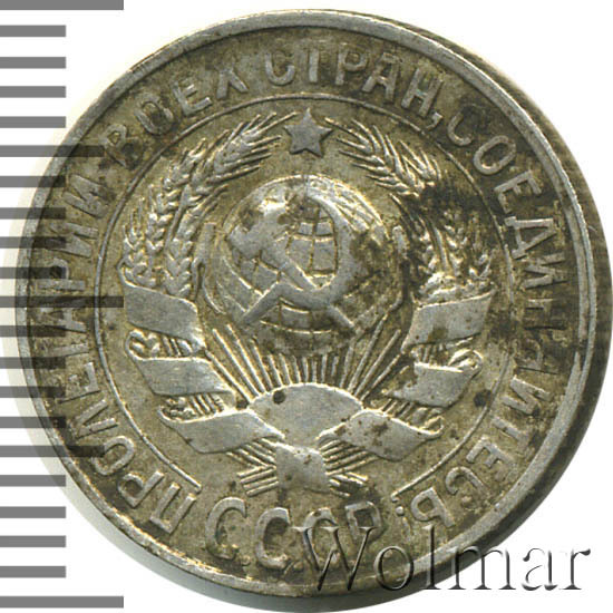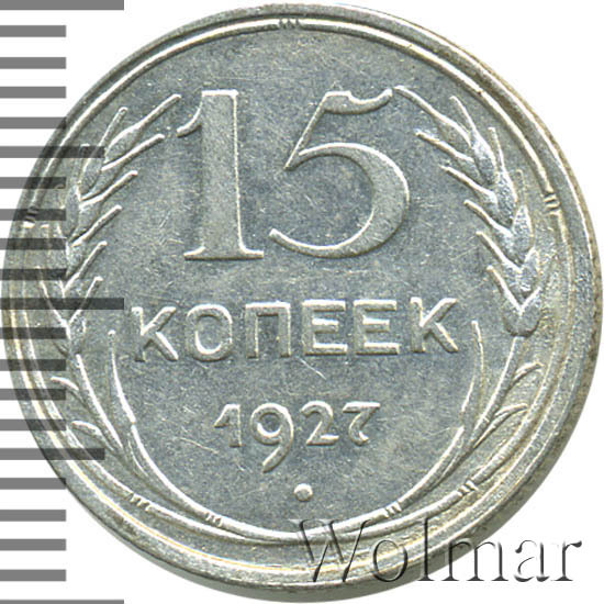 Реверс монеты 15 копеек 1927 года