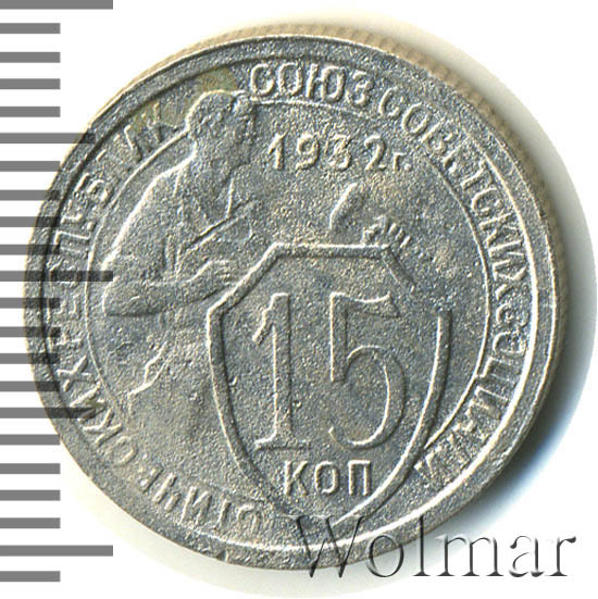 Реверс монеты 15 копеек 1932 года