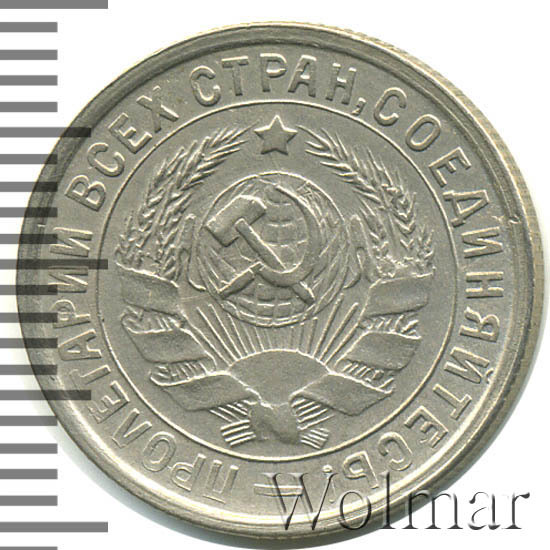 15 копеек 1932 года были отчеканены на Ленинградском монетном дворе. Тип 1931 – 1934 годов. Цена на монетку в среднем состоянии не велика, но может порадовать в коллекционном UNC, так как с момента выпуска прошло уже много лет и лишь малая толика 15 копеек 1932 г. дошла до нас в первозданном виде. В состав сплава белого цвета, для производства разменных монет, входила медь (81%) и никель (19%). Существует две разновидности (см. описание аверса).