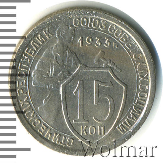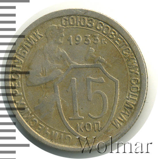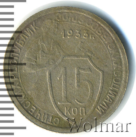 - Тиражная и специальный чекан. Всё о стоимости монеты 15 копеек 1933 года