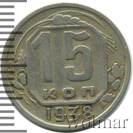Цена на монету 15 копеек 1938 года на сегодня, 29 апреля 2026 года