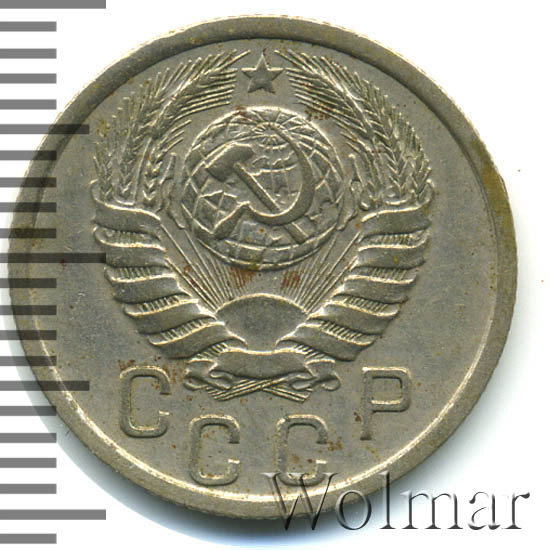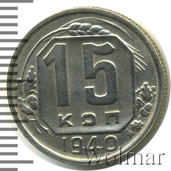 Аверс монеты 15 копеек 1940 года