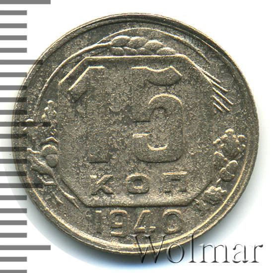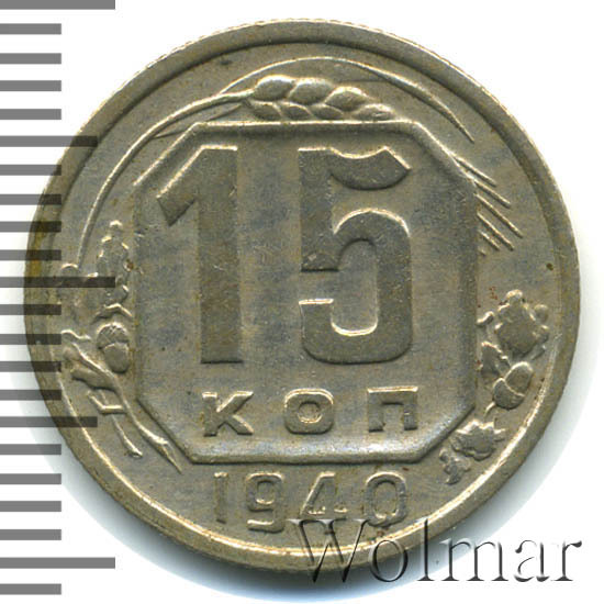 Реверс монеты 15 копеек 1940 года