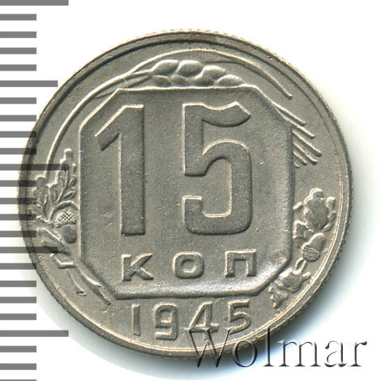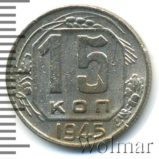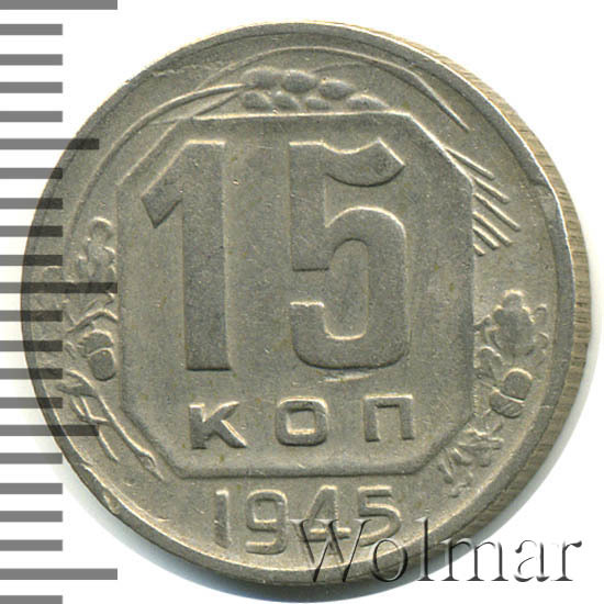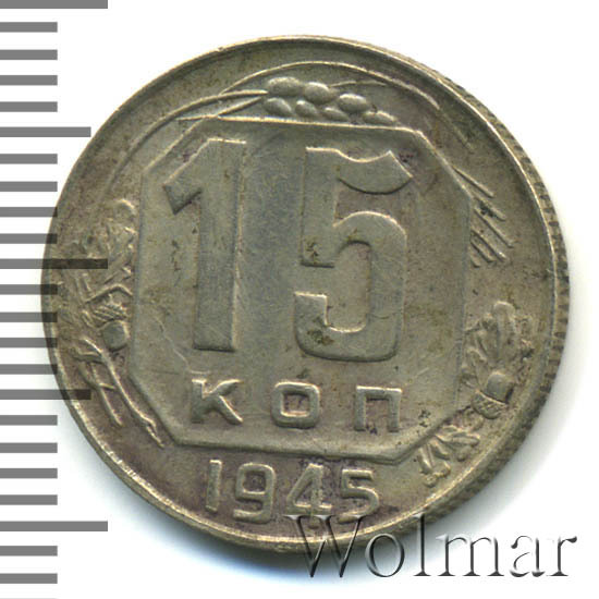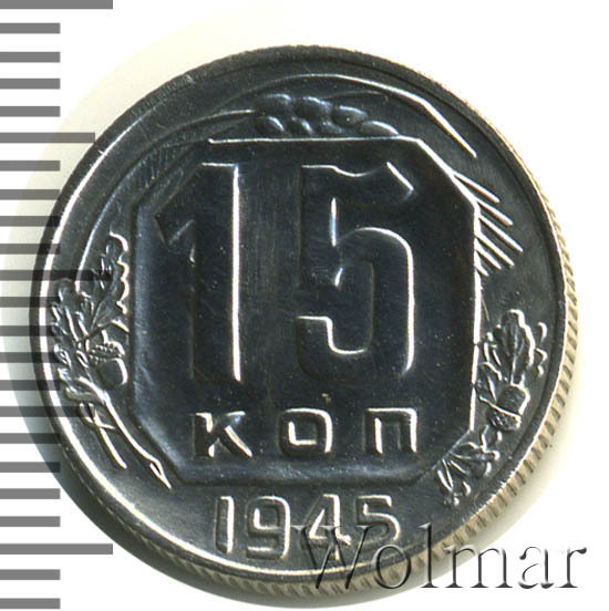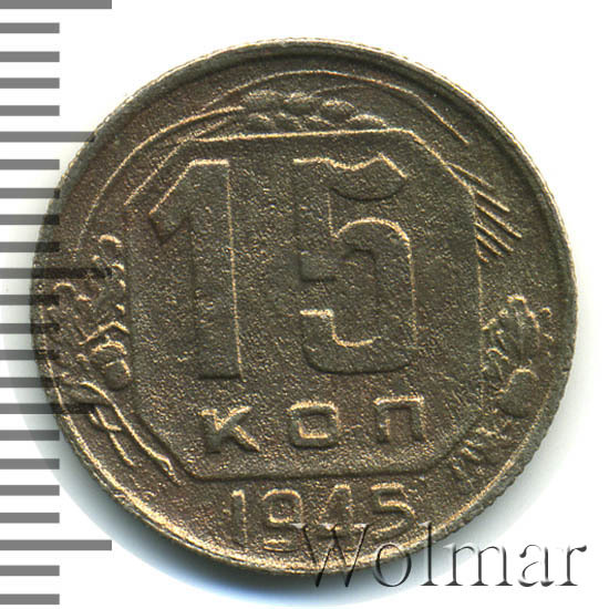 15 копеек 1945 штемпель 2В