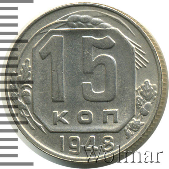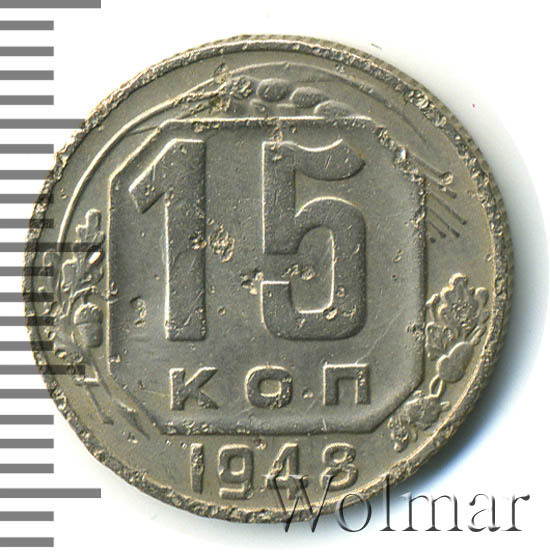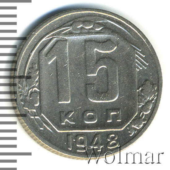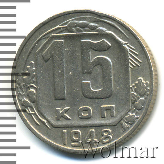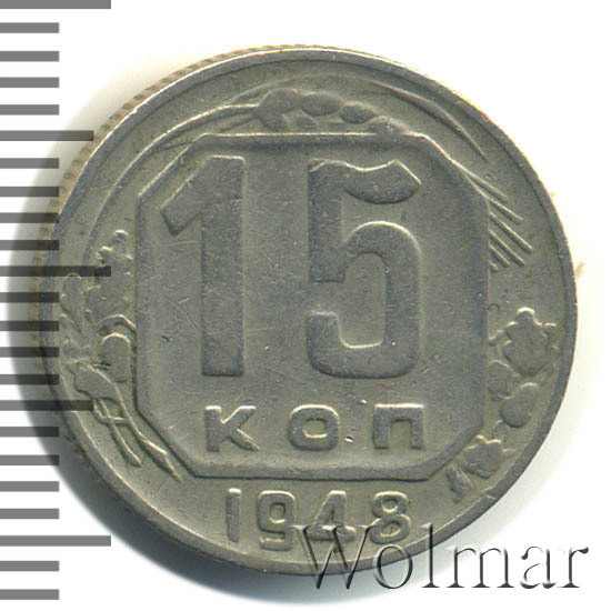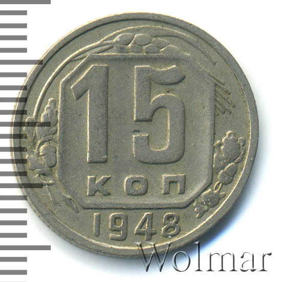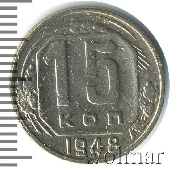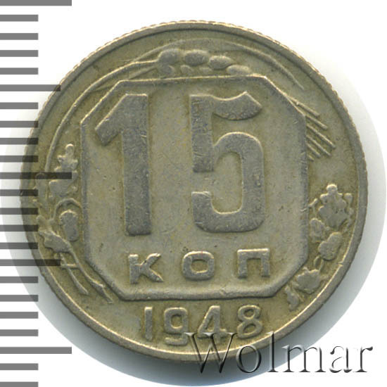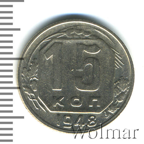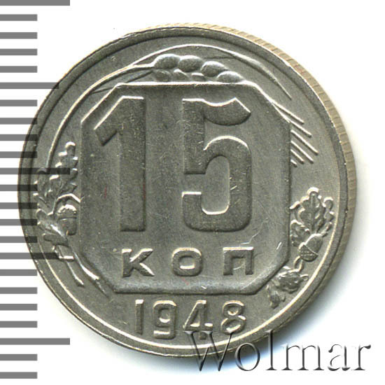 - Цена монеты 15 копеек 1948 года. Разновидности реверса и аверса