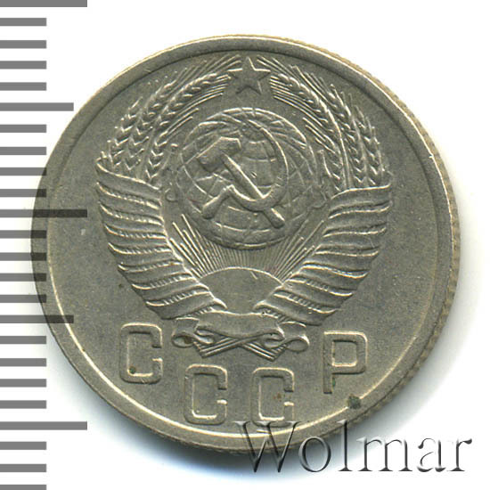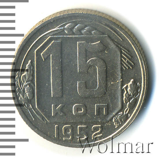 Реверс монеты 15 копеек 1952 года