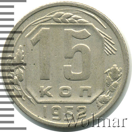 Цена на монету 15 копеек 1952 года на сегодня, 6 февраля 2026 года