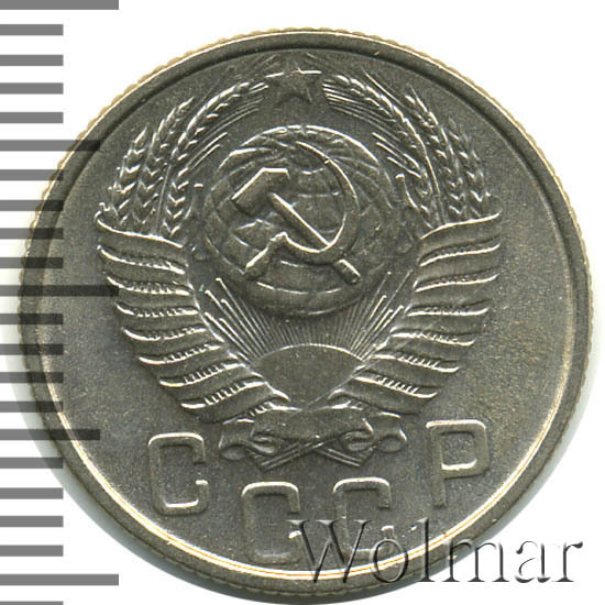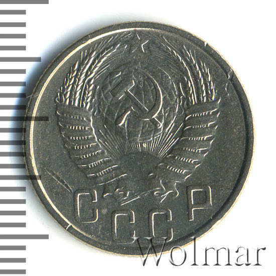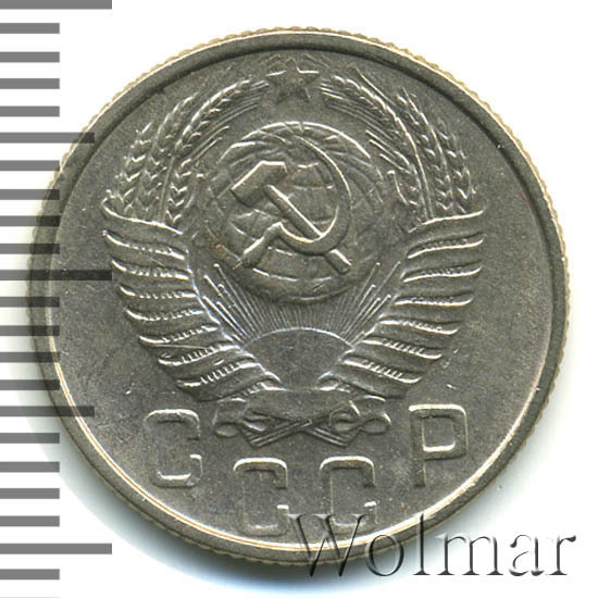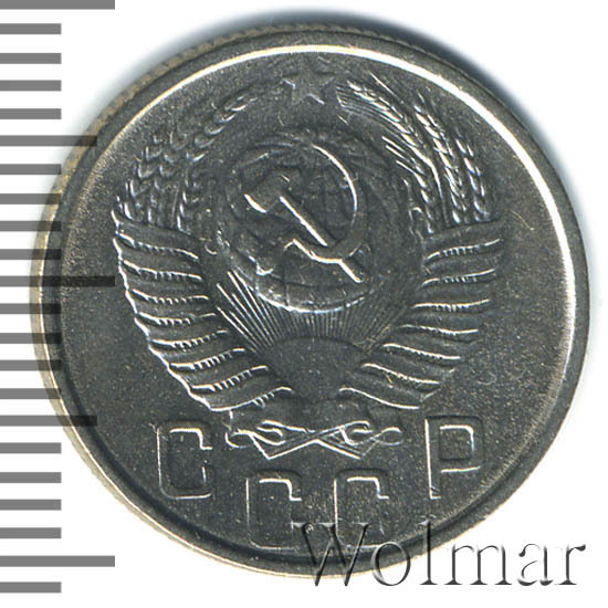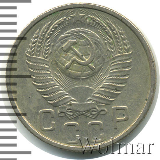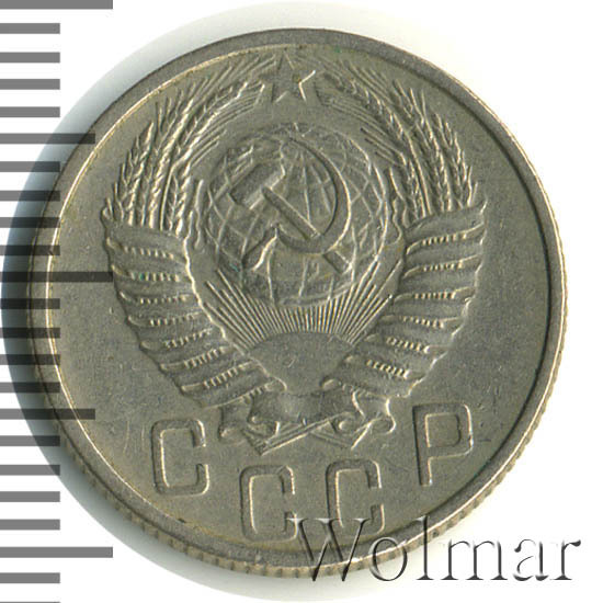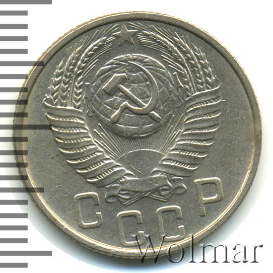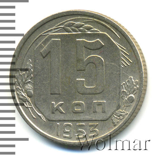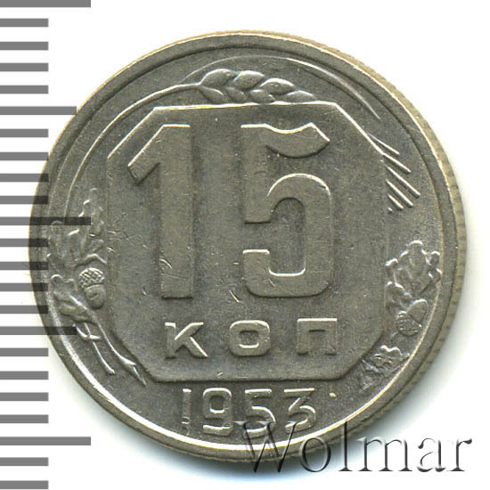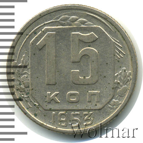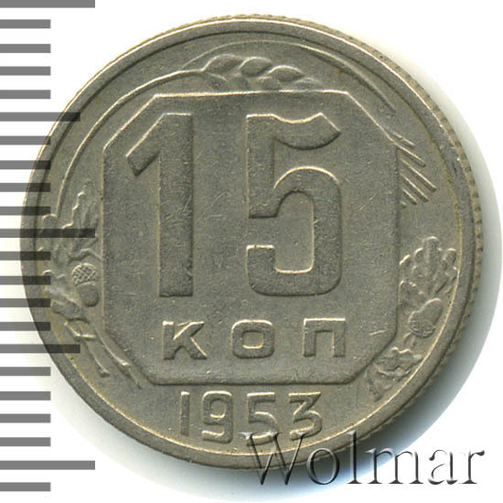 Реверс монеты 15 копеек 1953 года